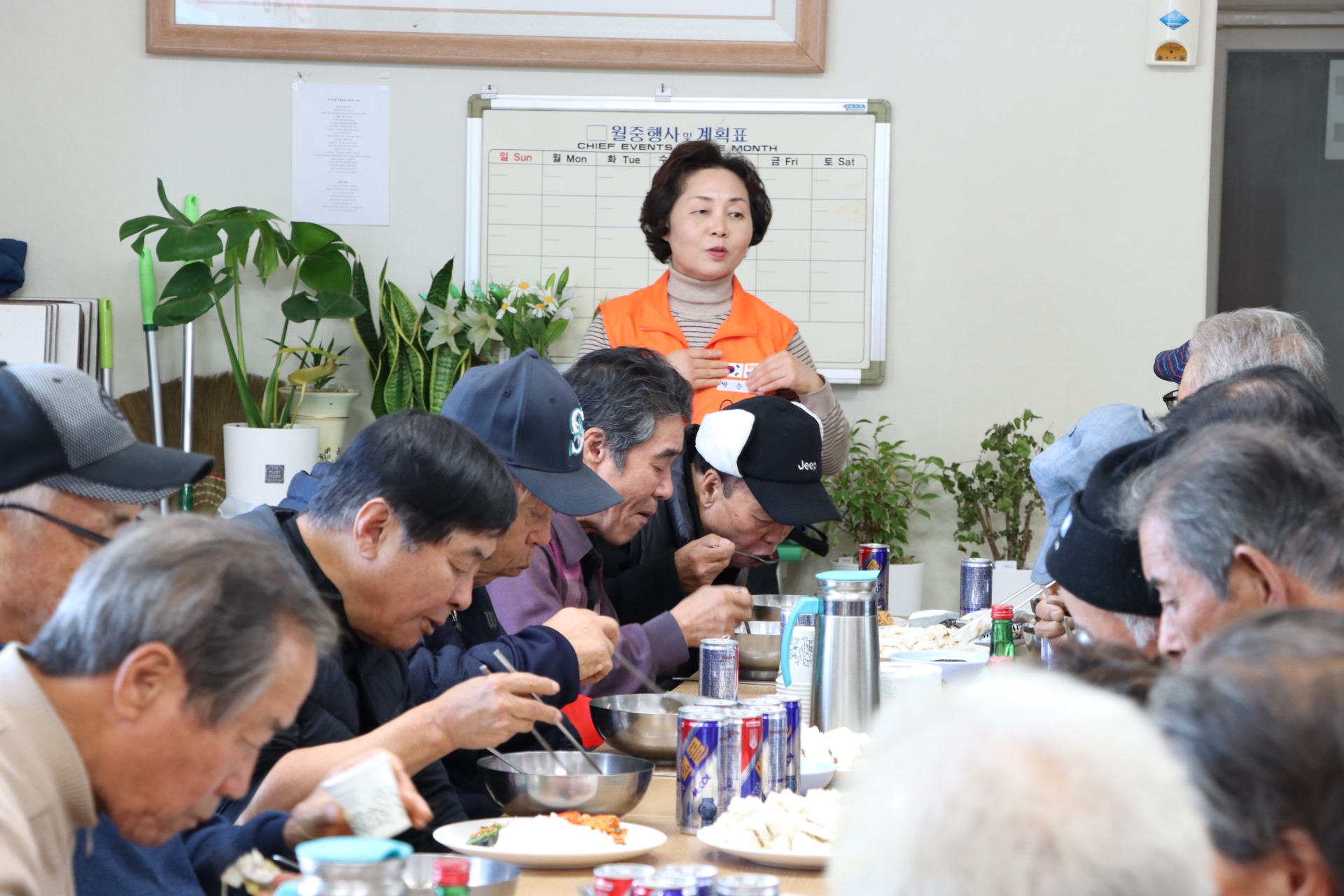 백자리 경로당의 봉사자분들은 노인회의 지원을 받아 매주 어르신들을 위해 정성스럽고 건강한 식사를 제공하고 있습니다.